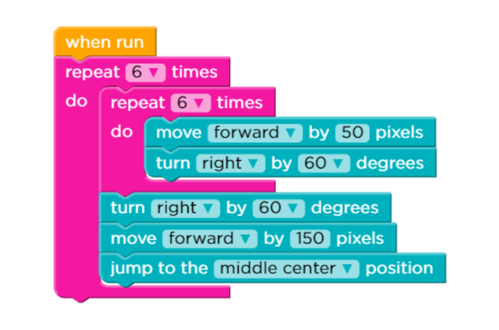 Sequencing, sprites, loops, conditions, events, functions and variables.
