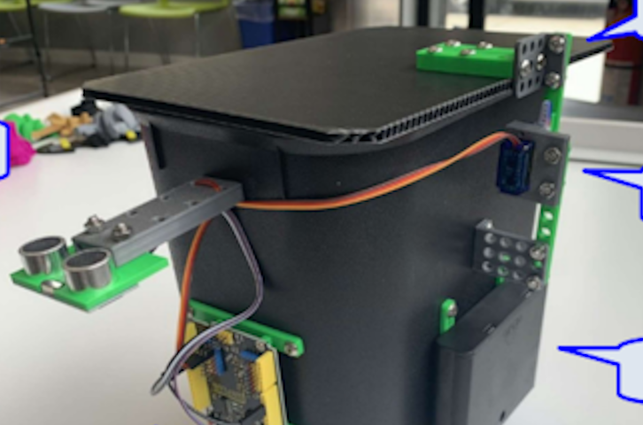 Build a Smart Trash Can, you can think of it like a robot, it has an eye, a brain and an arm.
